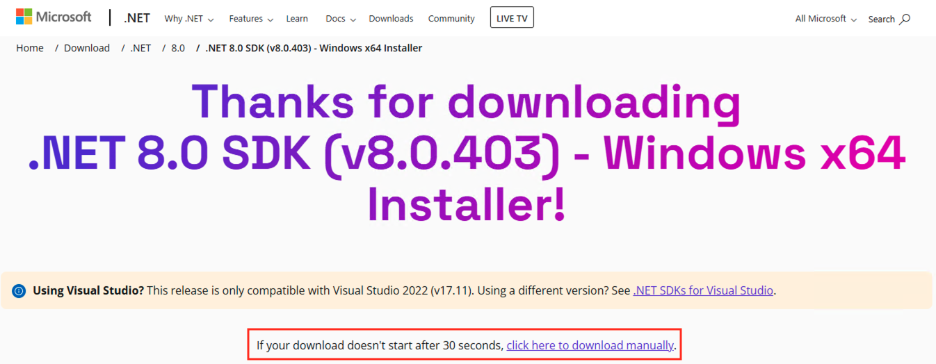 Download .NET 8.0 SDK (v8.0.403) - Windows x64 Installer