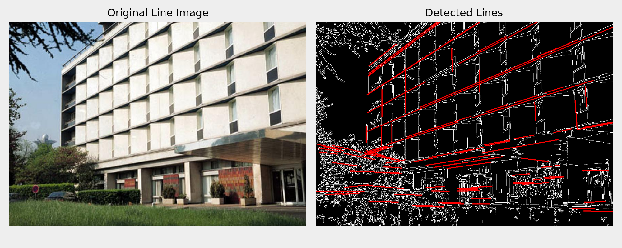 이 함수는 cv2.HoughLines()와 유사하지만, 확률적 허프 변환을 사용하여 더 효율적으로 직선을 검출합니다. 여기서는 선의 시작점 (x1, y1)과 끝점 (x2, y2)을 직접 반환합니다.