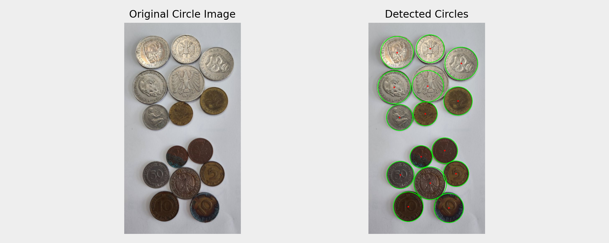 이 함수는 이미지에서 원을 검출하는 데 사용됩니다. 허프 변환을 사용하여 원의 중심과 반지름을 계산합니다.