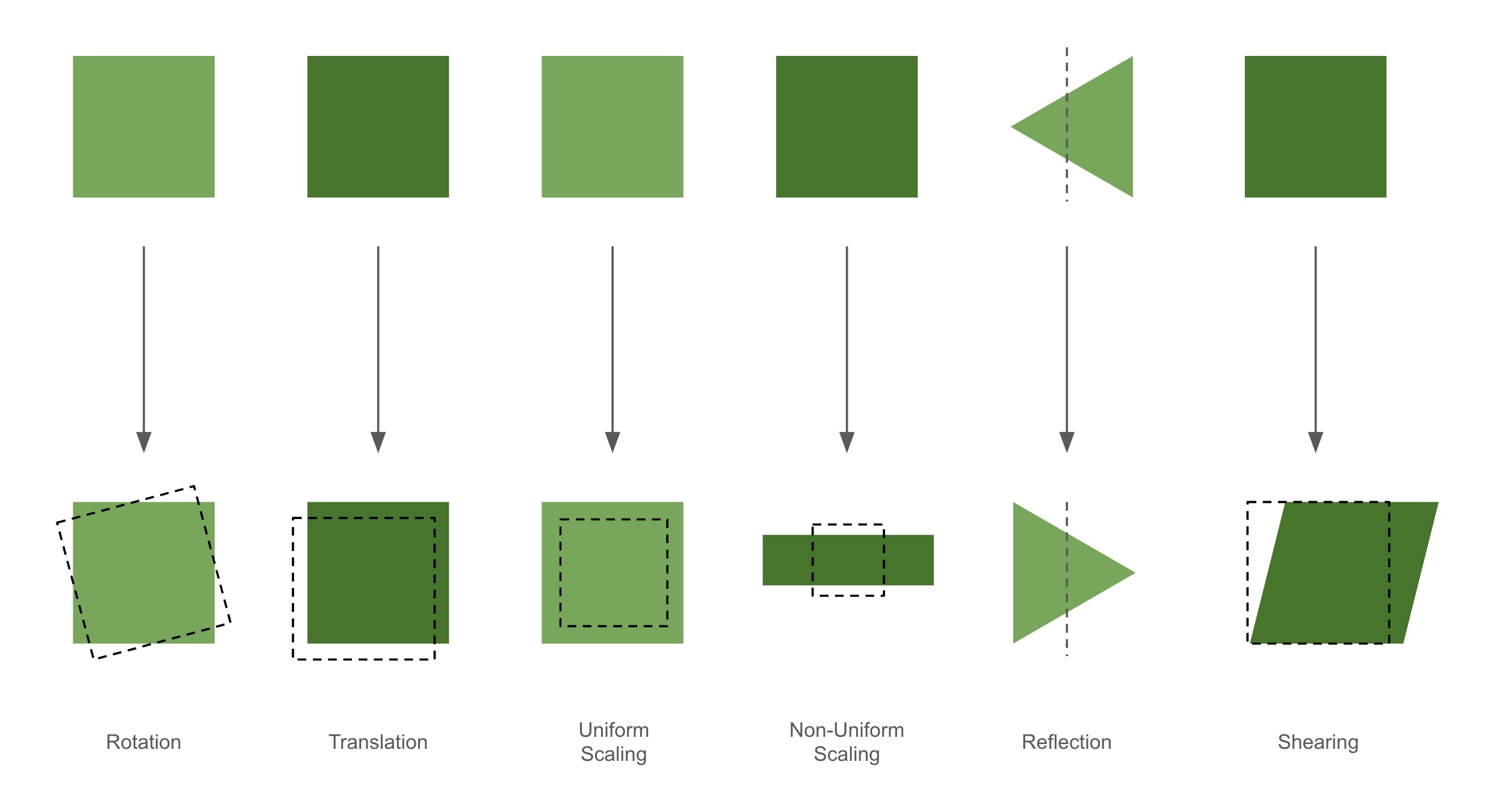기하학적 변환은 수학적으로 변환 행렬(Transformation Matrix)를 사용하여 정의됩니다. 이를 이해하기 위해 먼저 선형 변환에 대해 알아보겠습니다.