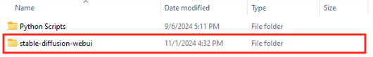 다운로드가 완료되면 [stable-diffusion-webui] 폴더가 만들어졌는지 확인할 수 있습니다.