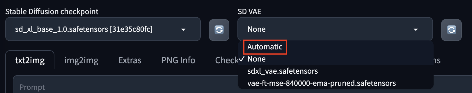 VAE 파일은 사용하는 모델에 따라 전환이 필요하므로 자동으로 해두는 것이 좋습니다.